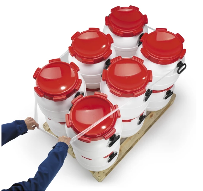 Verder erg gebruiksvriendelijk vereist 1 band per palletlaag; waarmee 100 stuks geleverd in een dispenserdoos.