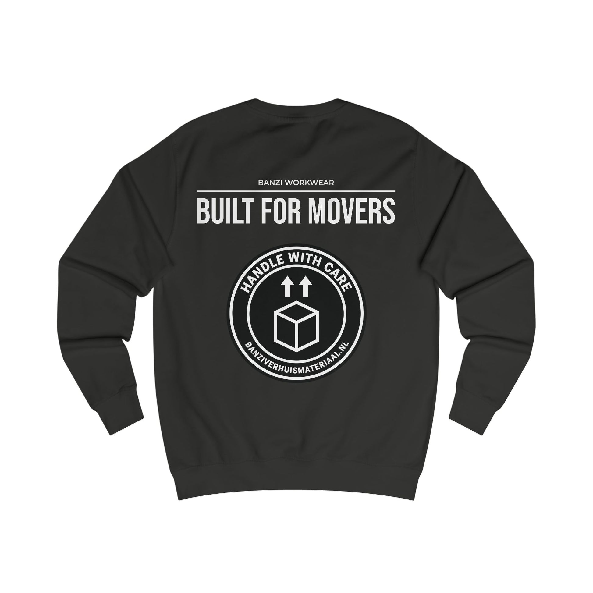 Stevig, comfortabel en gemaakt voor lange dagen. Dit sweatshirt heeft een clean Banzi-logo op de borst en een grote “BUILT FOR MOVERS” print met handling-icoon op de rug. Het draagt als echte workwear, maar ziet er strak genoeg uit voor onderweg of na de klus. Rechte, vertrouwde fit met ribkraag en manchetten die mooi in vorm blijven. Een no-nonsense trui voor crews die professioneel willen overkomen.